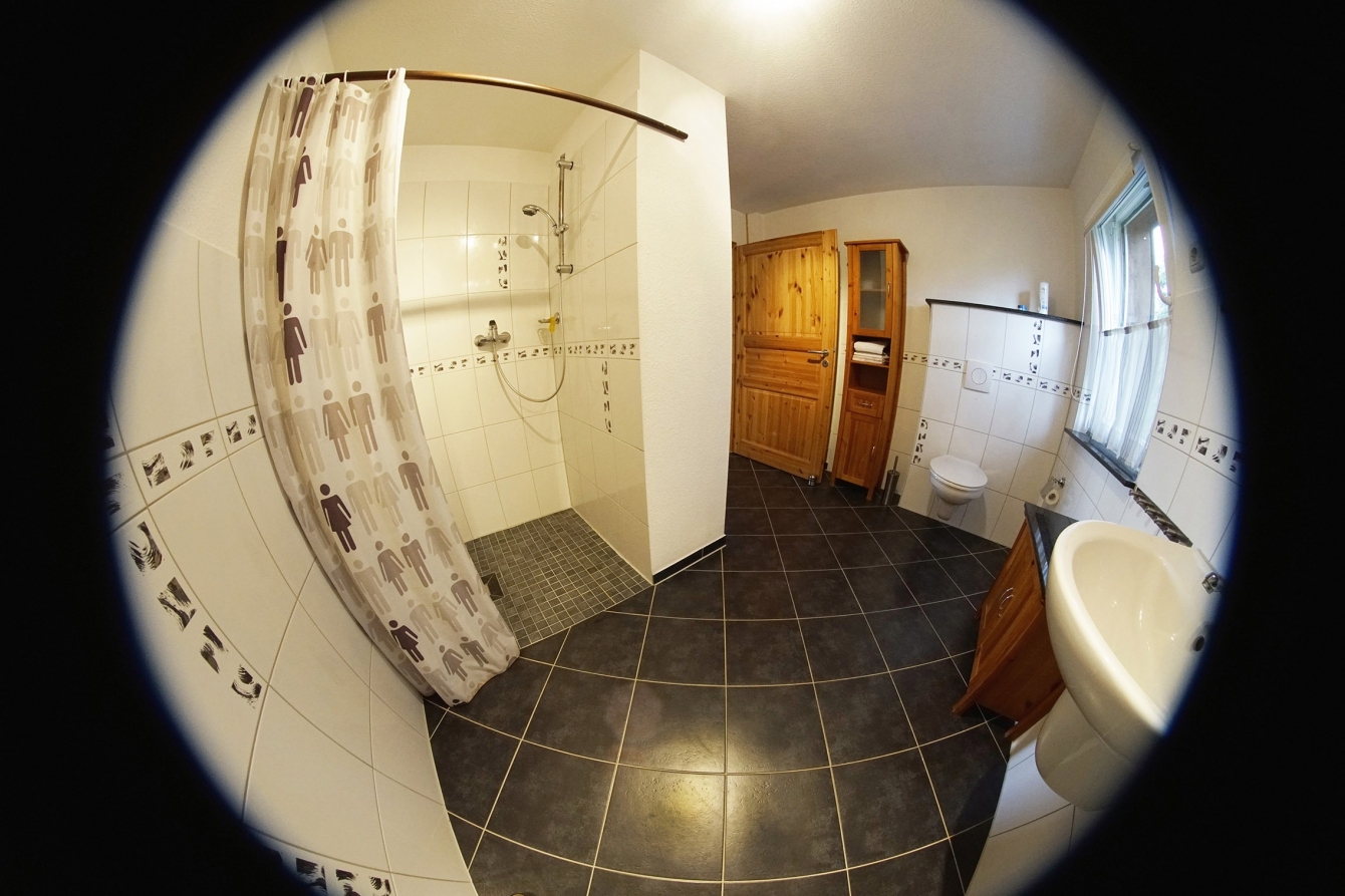Bad mit Toilette und ebenerdiger Dusche 1m x 1,2 m und extra Toilette im HWR